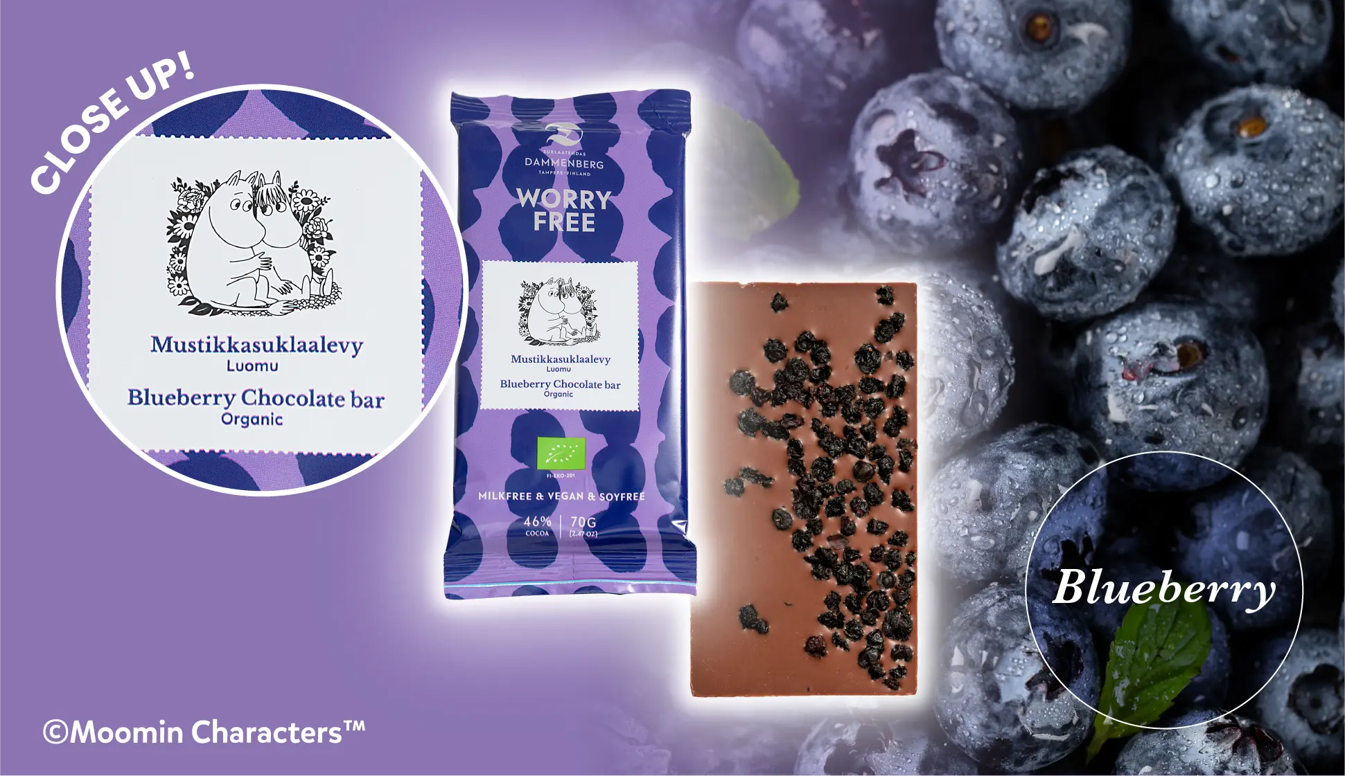 - 有機ココアバター、有機砂糖、有機米粉(有機米砂糖、有機ライススターチ、有機米粉)、有機カカオマス、有機ブルーベリー