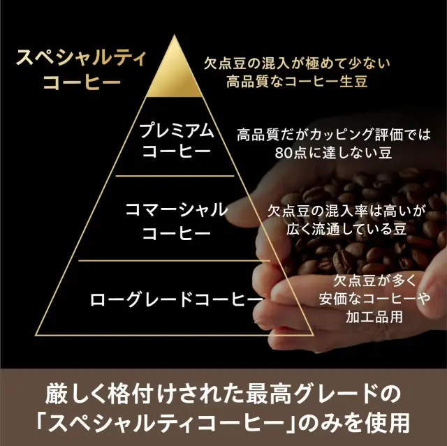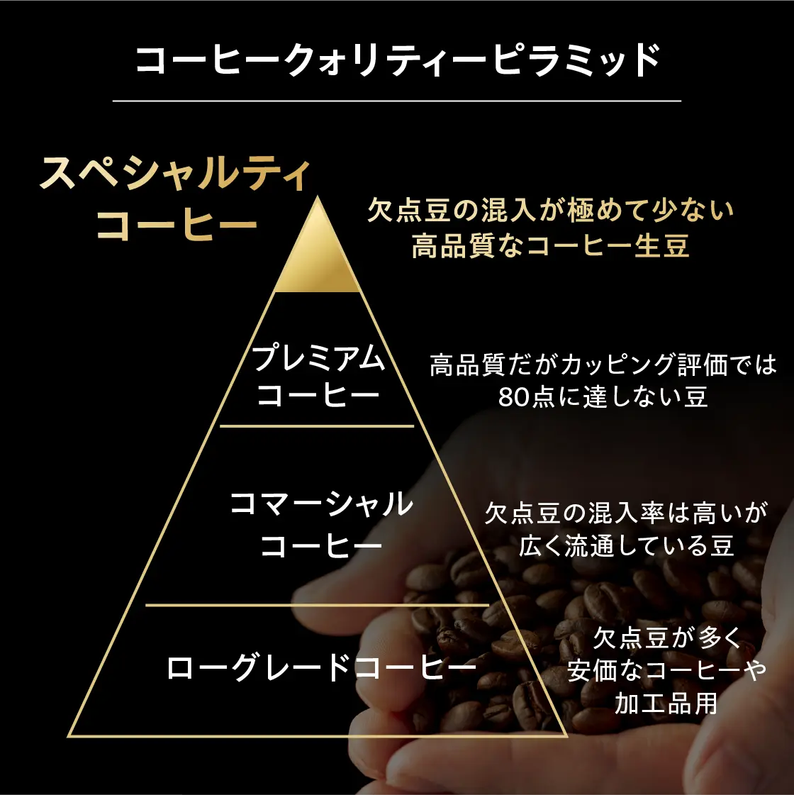 欠点豆(主に加発酵豆、カビ豆、未熟豆、枯れ豆など)の混入が極めて少ない高品質なコーヒー生豆に対しての呼称です。