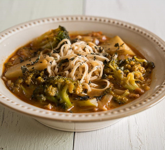 ジャガイモとブロッコリーのマッサマンヌードル