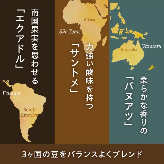 3ヶ国のカカオ豆をバランスよくブレンドした、芳香性豊かなチョコレートを使用しています。