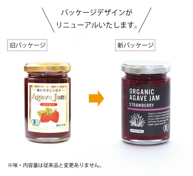 - 有機いちご(トルコ産)、有機アガベシロップ、有機レモン濃縮果汁/ゲル化剤(ペクチン:柑橘由来)