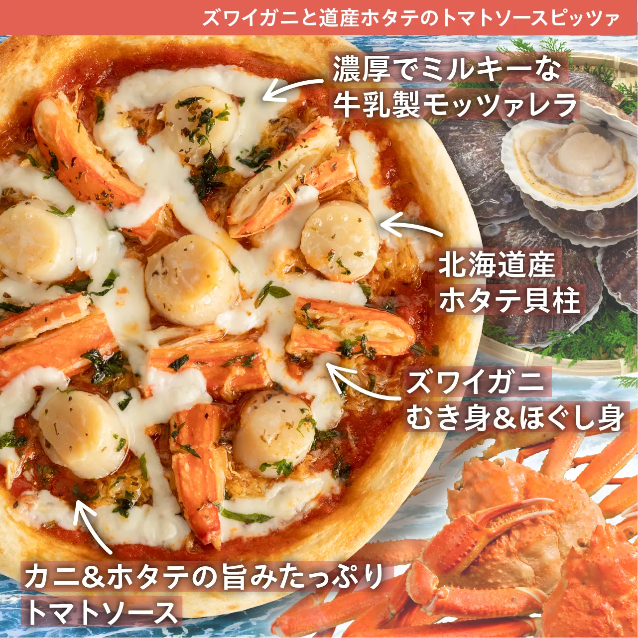 ズワイガニと道産ホタテのトマトソースピッツァ