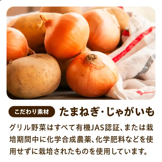 野菜はすべて有機JAS認証、 または栽培期間中に化学合成農薬、 化学肥料などを使用せずに栽培されたものを 使用しています。
