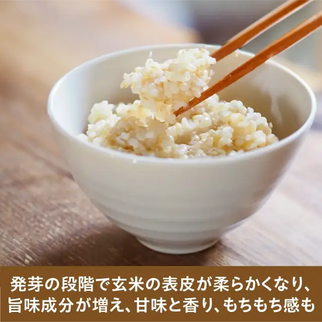 発芽の段階でかたい玄米の表皮が柔らかくなり、旨味成分が増える、甘味と香り