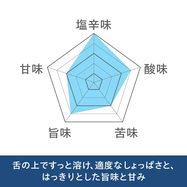 舌の上ですっと溶け、適度なしょっぱさと、はっきりとした旨味と甘み。