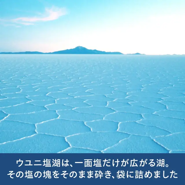 ウユニ塩湖は、一面塩だけが広がる湖です。